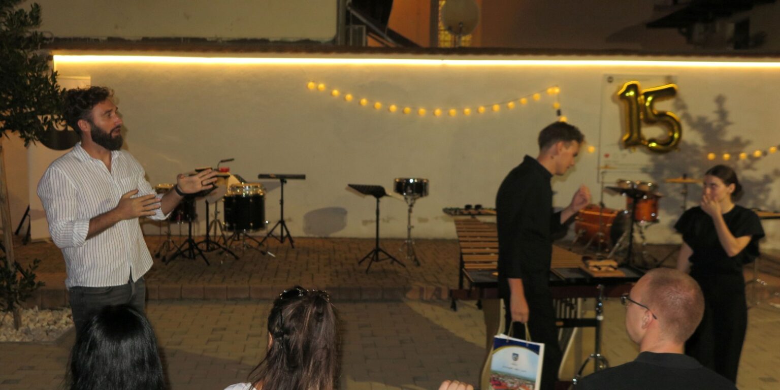 Mladi Resonance Duo nastupio je s koncertom Sudar vibracija, repertoarom koji su činila djela koja potpisuju Živković, Šuklar, Masson, Sammut, Schumann, Sejourne i Martynciow. Resonance Duo su Lucija Šimanović Mišćević (20) i Vid Pajić (18), studenti 2. godine udaraljki na Muzičkoj akademiji u Zagrebu kojima je zajedničko da su studij započeli ranije zbog iznimnog talenta. Treba li reći da ih je u udaraljkama u srednjoj školi učio prof. Konfic?